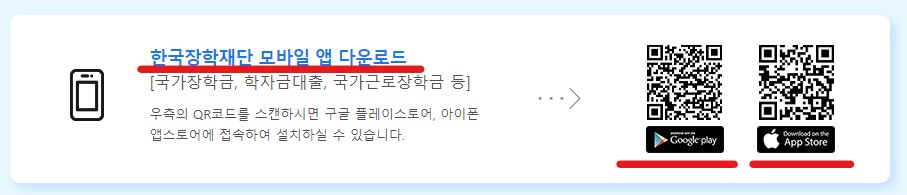 한국장학재단 모바일 앱을 통해서도 신청하실 수 있습니다. QR코드를 스캔하시면 앱 다운로드 화면으로 이동합니다.